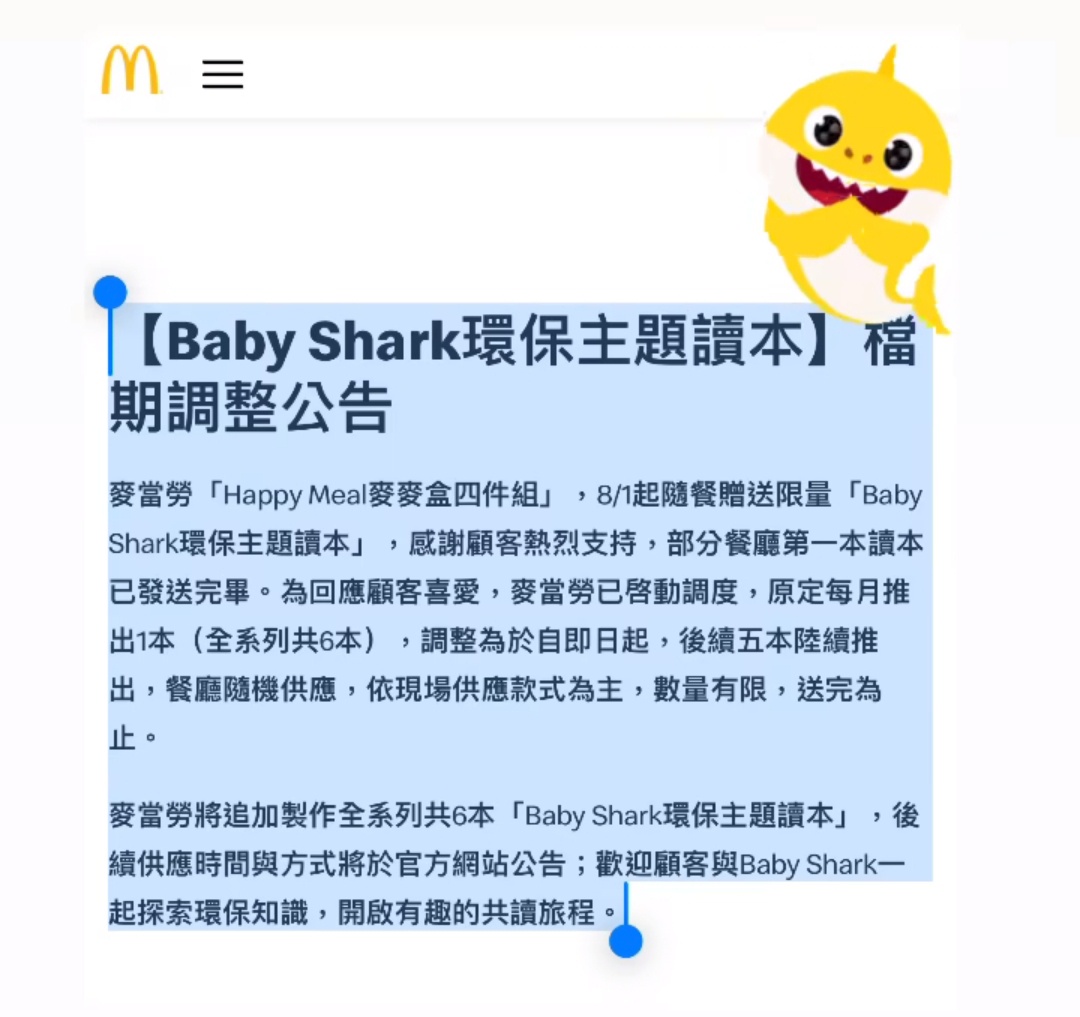 推 mimix1986 : 還好我家對這組baby shark沒興趣,逃過。比較喜歡F 08/05 15:31