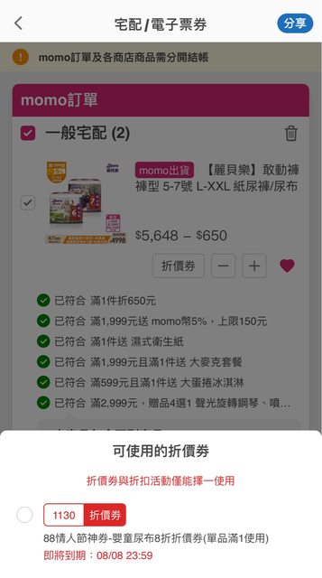 標題[好康] momo 88情人節尿布神券