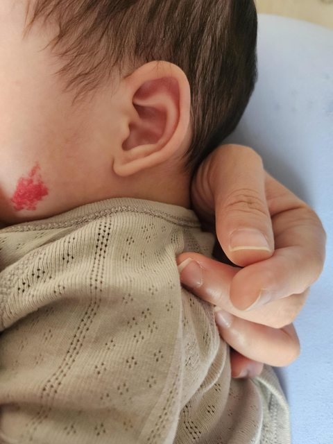 推 jennifhsu : 二寶1M22D也是血管瘤,不過是淺層的,上週開始在真 08/10 15:20