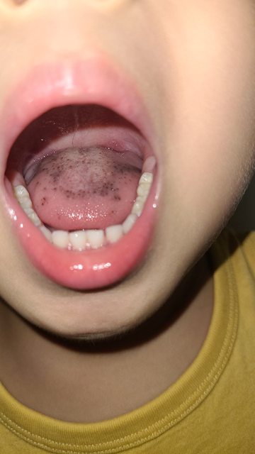 : 姪兒小時候發現舌頭上有 黑黑紅紅的斑點,到目前3歲還是這樣的狀況。