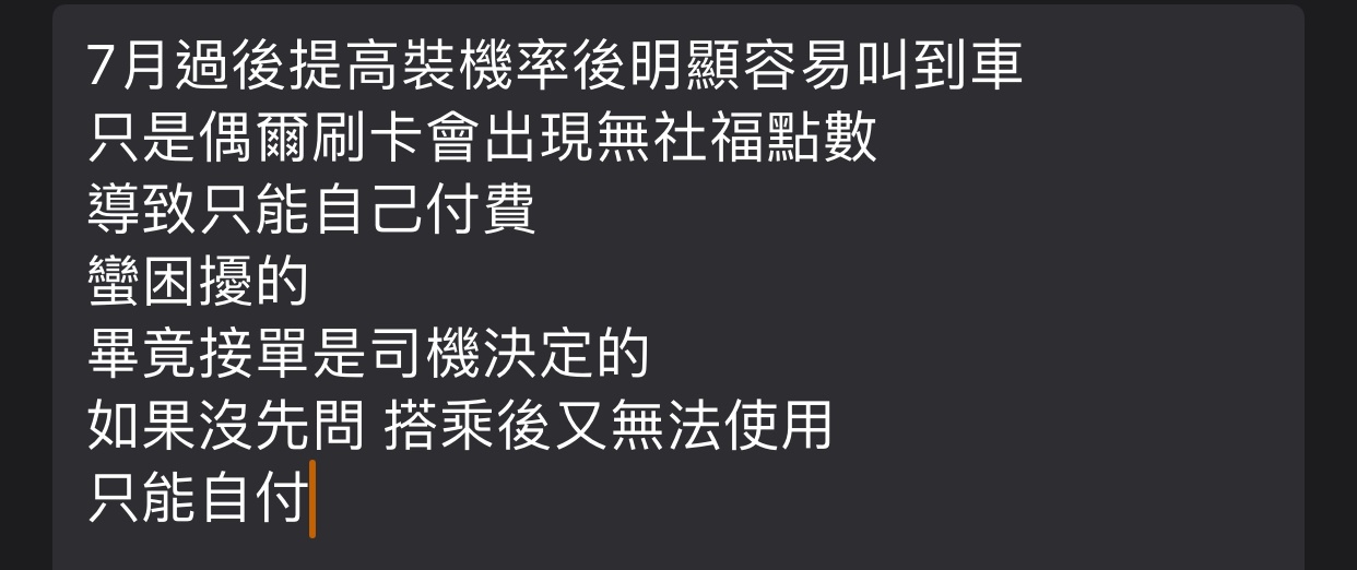 推 linemap : 我在高雄用55688APP叫車,備註沒有寫使用好孕乘車券 09/25 08:44