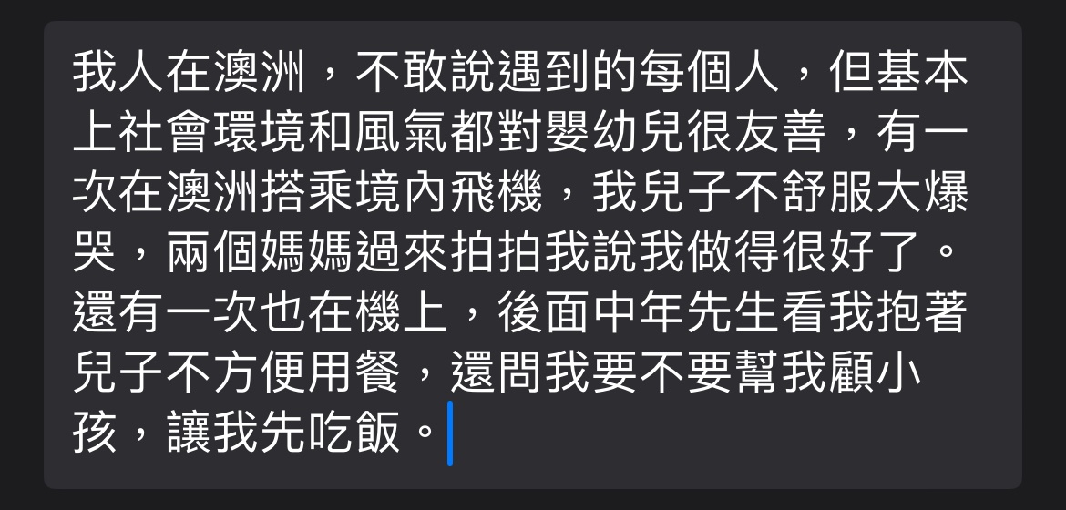 → pochidoggy66: 而且你在澳洲才不用怕吧,澳洲人更愛小孩 09/24 21:50