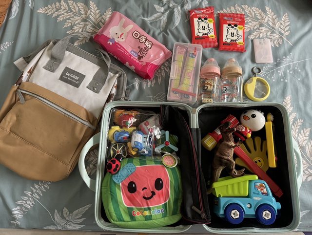 後來就有準備一個小小小型的行李箱裝他們出門的玩具