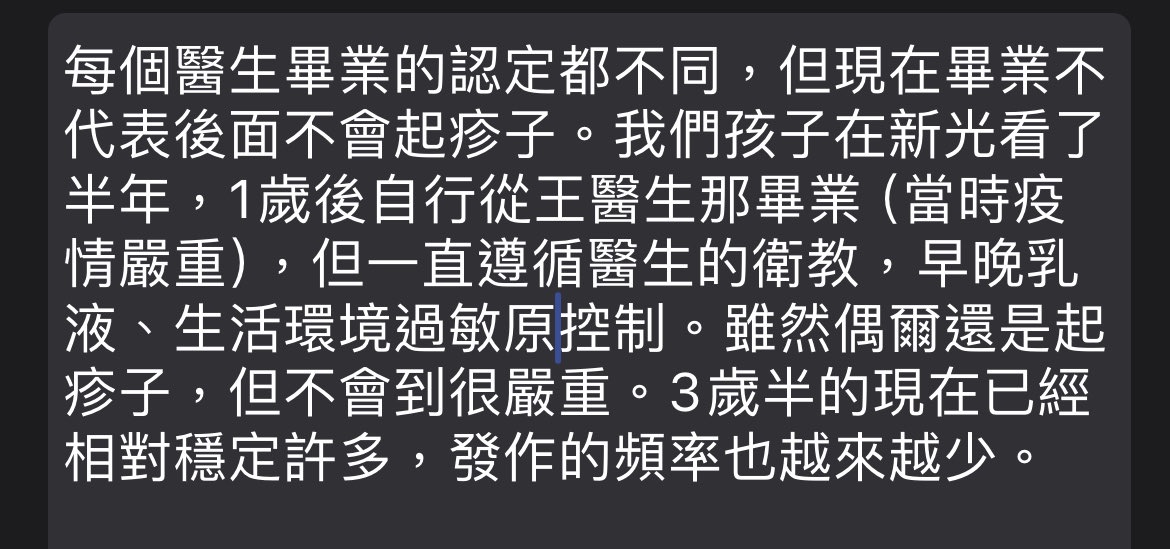 推 blackpeach27: 我兒從3m開始發病,一開始看蔡醫師後來5m換林胤谷 10/02 02:16