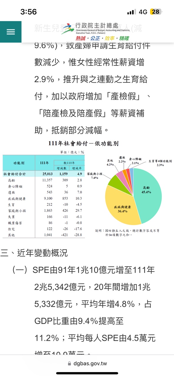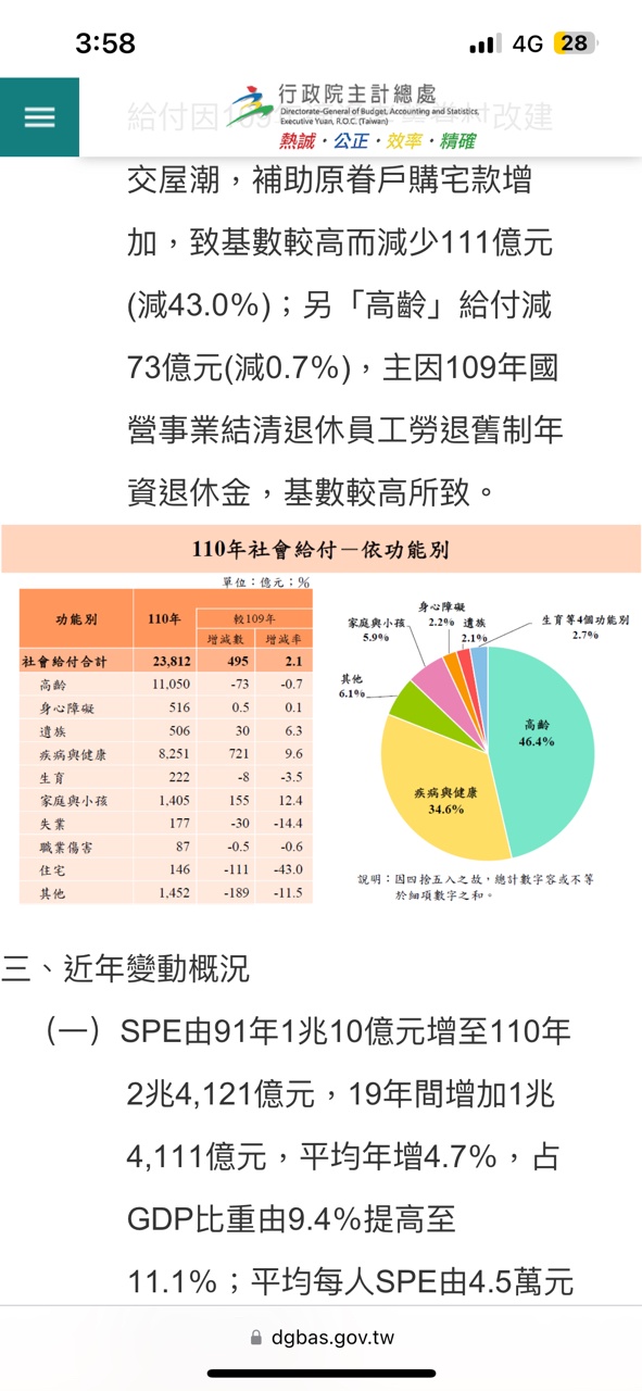 推 nlevta : 主計總處統計111、110年社會給付項目和比例,其中「 10/12 16:02