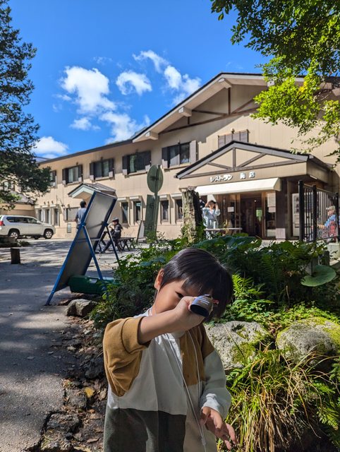 食物再上山,只能讓孩子喝一包在平湯溫泉買的果汁果腹。