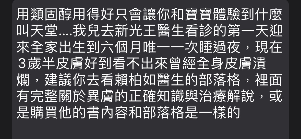 → shanachy : 個醫生單純擦藥都沒改善,後來找了皮膚專門的小兒 10/21 23:53