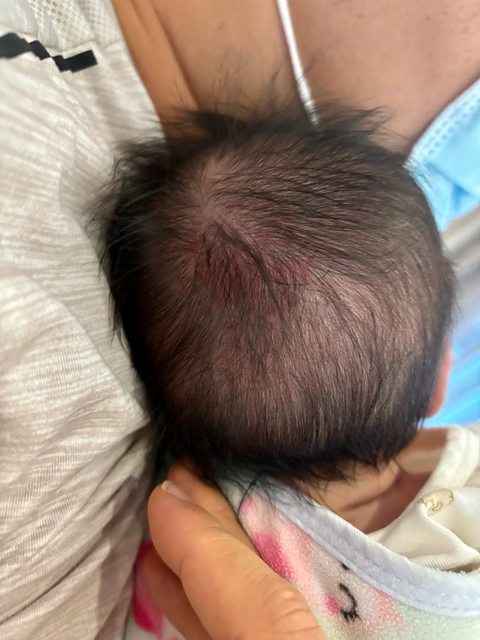 → tai0910 : 原po意思應該是 出生時只有後頸有紅斑 頭上的是出生 10/27 23:22