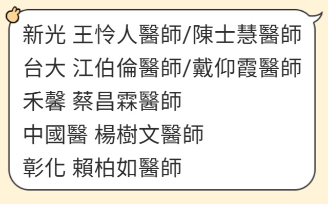 → sunnie5566 : 這是西醫的部分,中醫只知道林胤谷醫師。 11/02 15:40