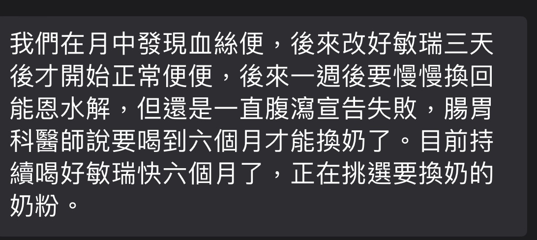 → twicekuai : 有血便才開始試好敏瑞,連喝了三個月才轉能恩水解 11/18 00:09