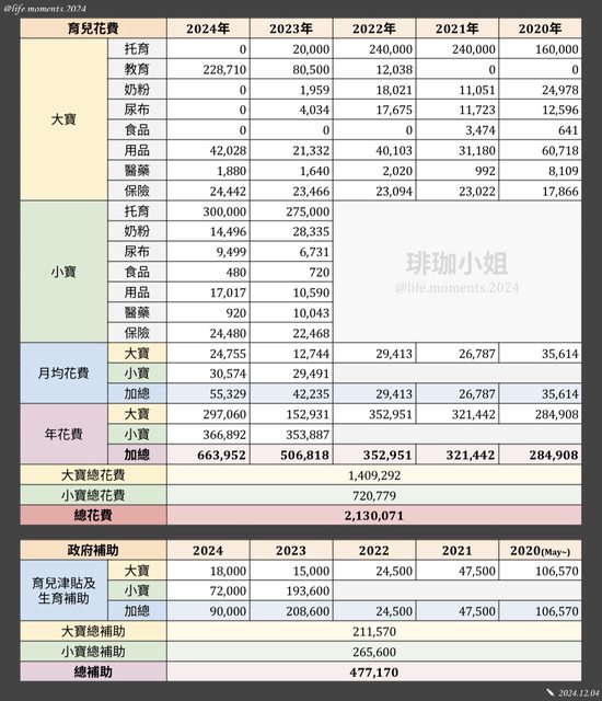 → kolala : 算省)。2024年後大寶教育費暴增(應該是開始各種才 12/04 17:32