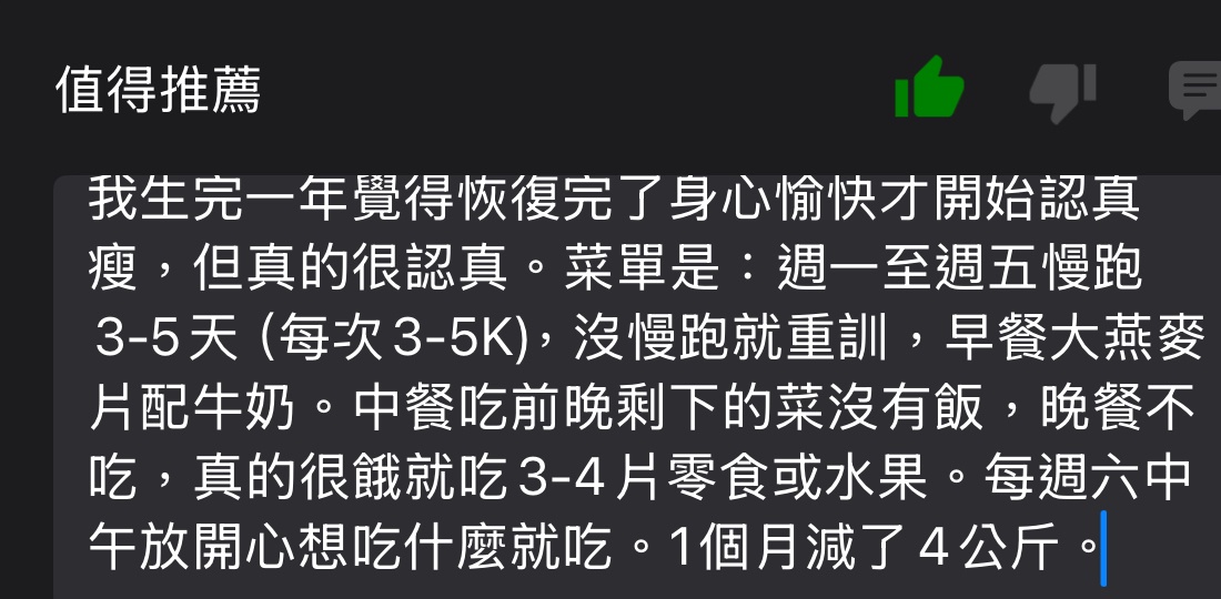 推 ohmco : 熱量要精算,一天吃三餐也沒有特別運動、母奶也餵 02/07 22:53