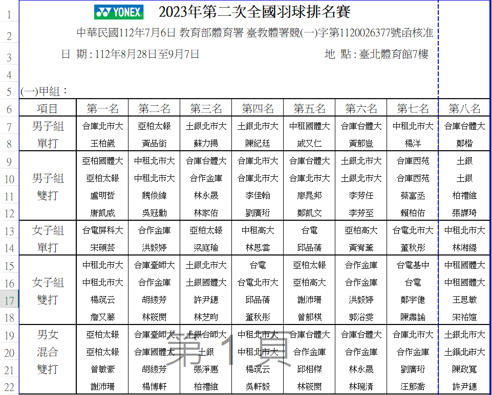 → Bmtswiiii : 冠軍,混雙第三也是並列。其實有一些選手也是本週 09/05 02:57