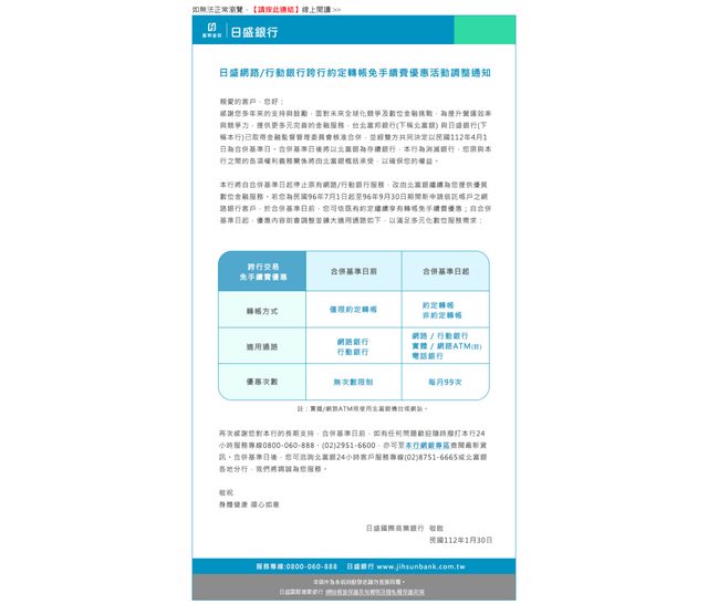 → TZUYIC: 年之前,日盛網銀也是用紅字寫終身免手續費,是今年1月才 01/31 12:46