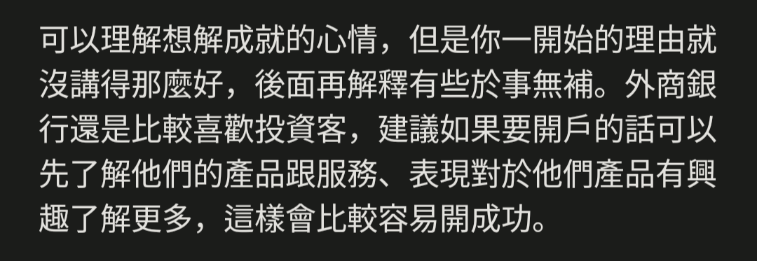 → narniamumu: 的還少嗎。你確實開戶理由不充分。當然可以合理婉拒02/18 12:03