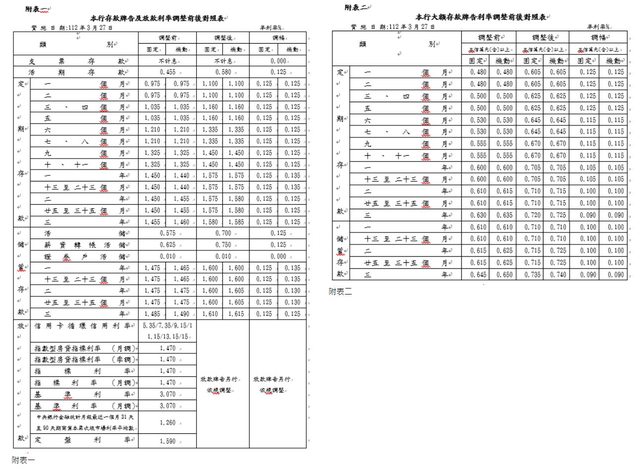 本行為因應市場利率水準及該行資金狀況,調整存款牌告利率,調整方案如附表,自112