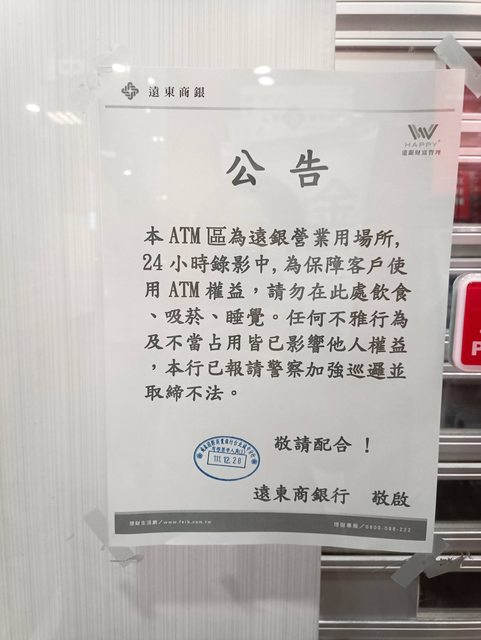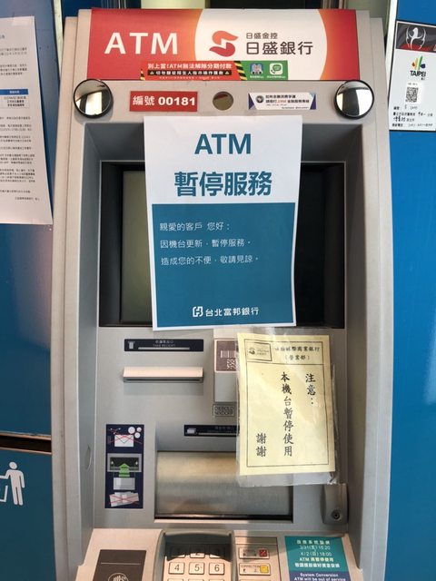 → TZUYIC: 結果分行的兩台ATM都被貼上維護中無法使用A4紙,最後一天04/01 03:47