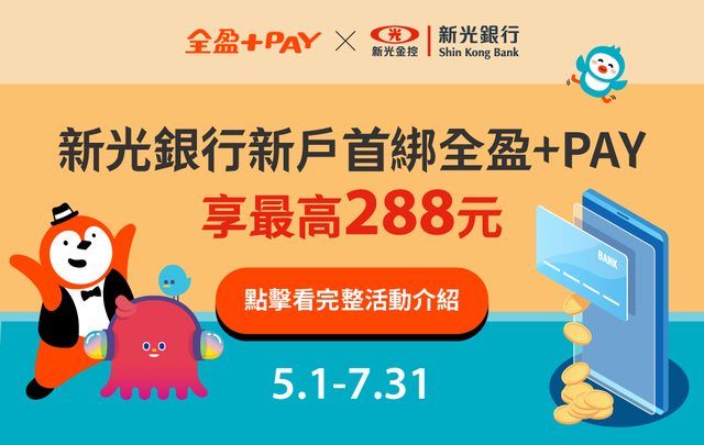推 TZUYIC: 2022年9月的全盈+PAY首綁新光並消費一筆只送50元,這次的 05/01 23:55