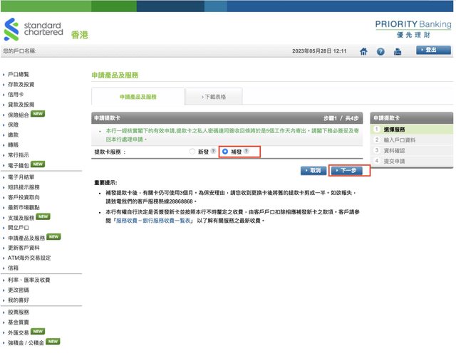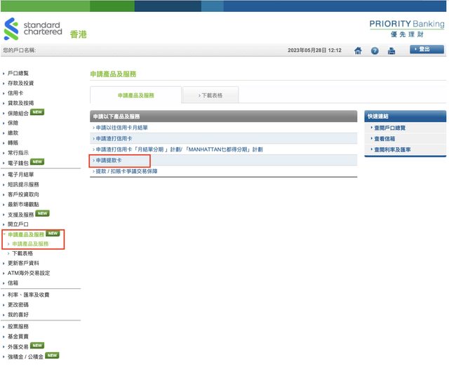 在左側欄位點選「申請產品及服務」,點擊後就可以看到「申請提款卡」的選項
