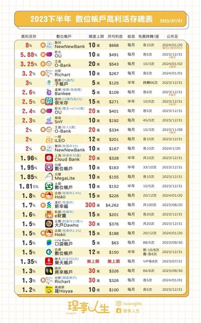 → albert: 1.3%以下的就都不用考慮了。Bankee 1.31% 無條件、無上限 07/01 18:16