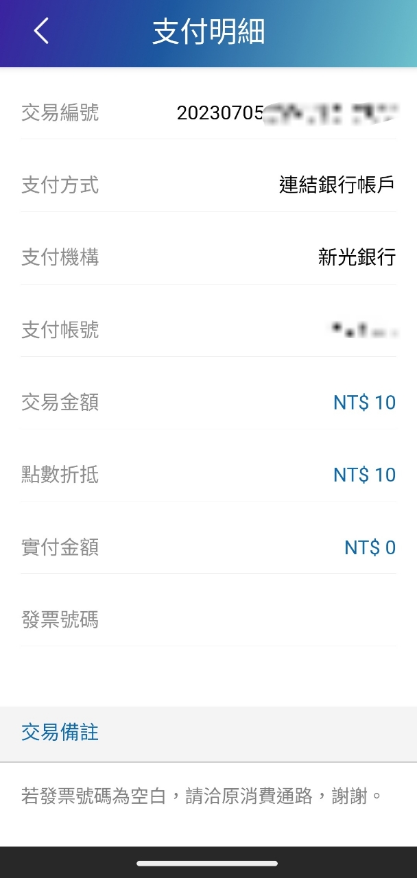 → zetazko: 交易紀錄是連結新光帳戶 支付0元 XD 07/05 01:28