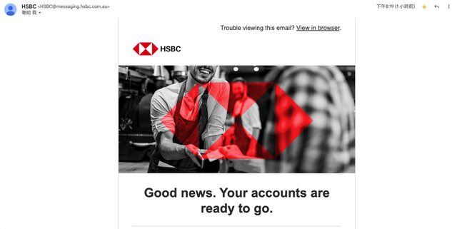 7/27 8:20PM 收到HSBC AU的Email說我的帳戶通過了???