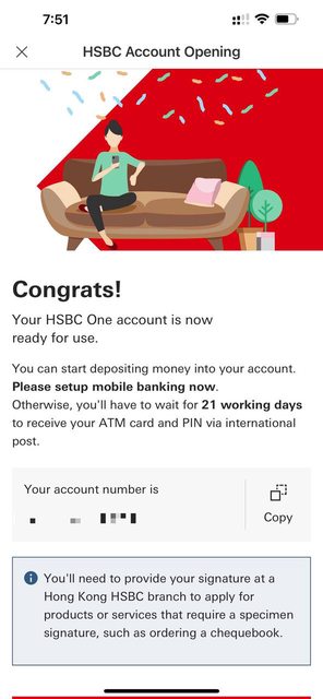 7/27 7:40PM 線上申請HSBC HK One帳戶