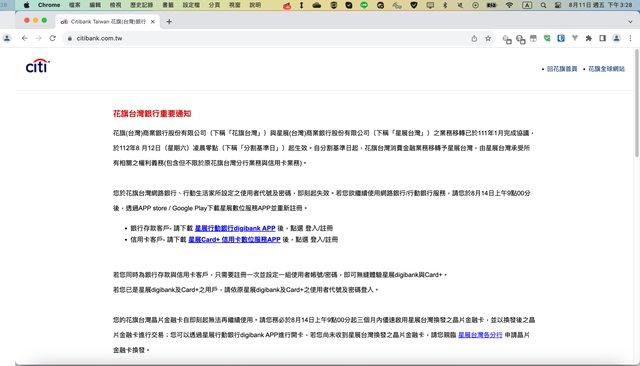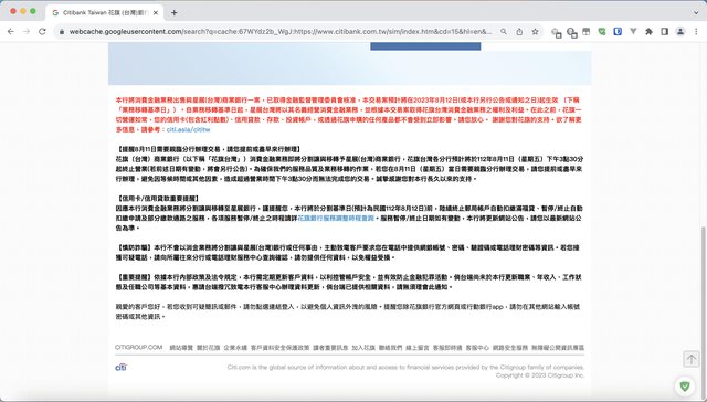 → TZUYIC: 花旗(台灣)銀行已經沒了,消滅了。 08/11 15:57