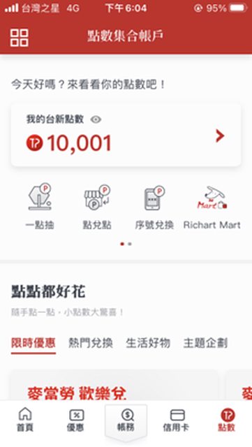 : 有看到點數兌換專區,可以換一堆麥當勞XD