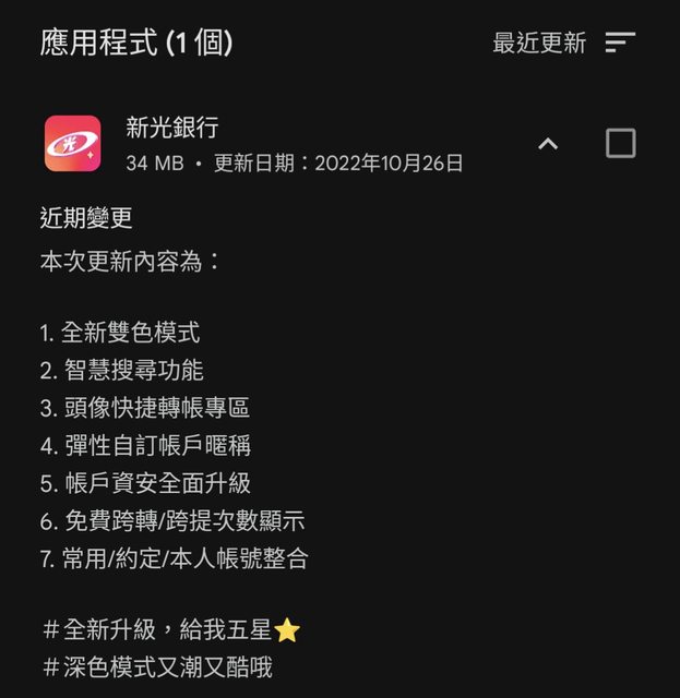 → iueeng: 信用卡app好像也是近日更新版的,之前舊的信用卡 app 無 09/07 05:24
