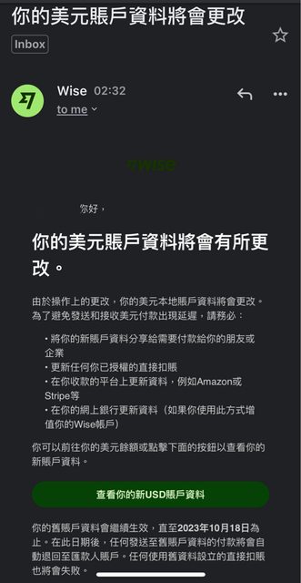 標題[情報] Wise US Account 換供應商