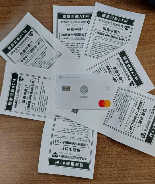 → operatorm: 以前開的,國泰超大方,1人7帳7金融卡,50*7無卡提全復活 12/02 06:00