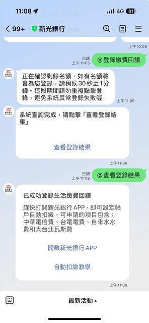 推 BabyWolf: 謝謝 我是line舊綁定戶上月來不及扣 應該就剩這月了 12/05 18:25