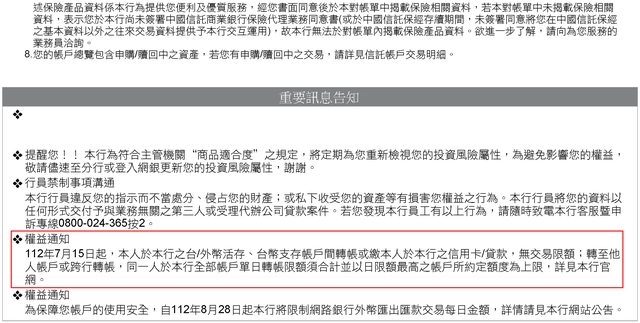 → bemaz: 視為約定帳戶,轉帳額度約定比較高,台企現在縮這麼多喔? 12/08 10:24