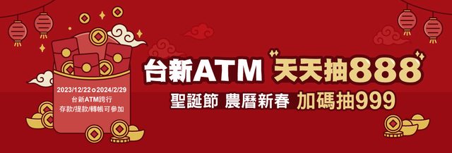 2023/12/22~2024/2/29 台新ATM 天天抽888