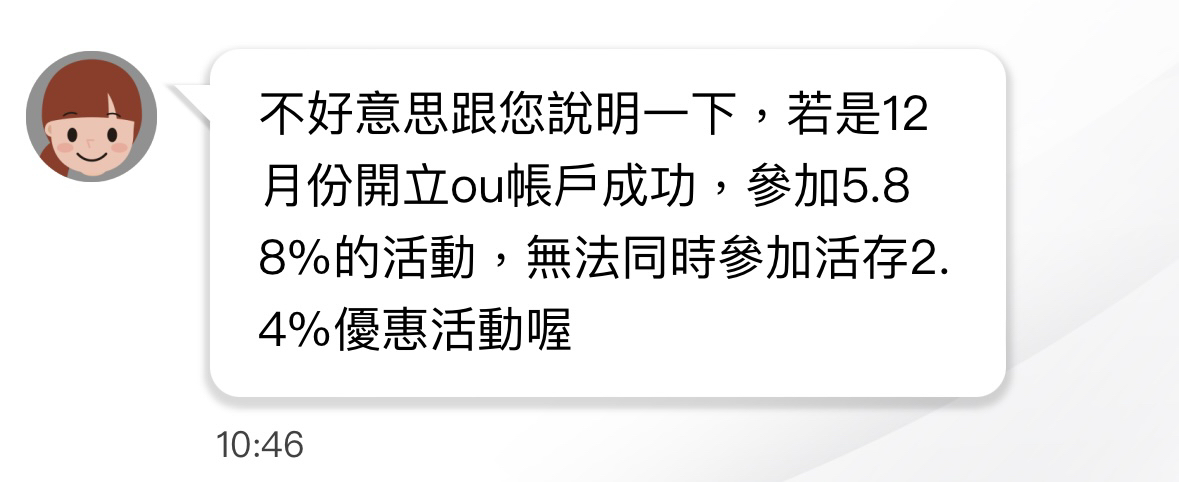 推 Miyanishi25: 剛問文字客服,12月辦理OU新戶不能參加這個活動 12/28 10:56