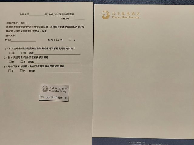 : 12/20 永豐VIP在台中鳳凰酒店聽演講與年末聚餐