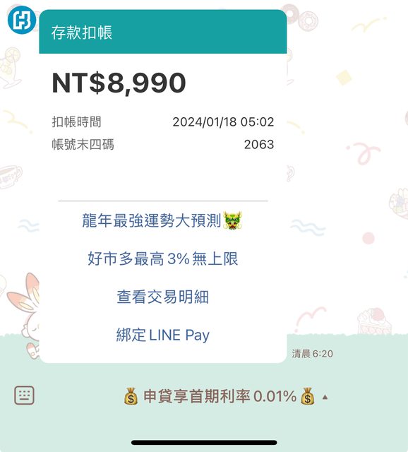 → bemaz: 可以即時恢復額度,但linepay 幾次取消都要等幾天,(實體 01/18 12:19