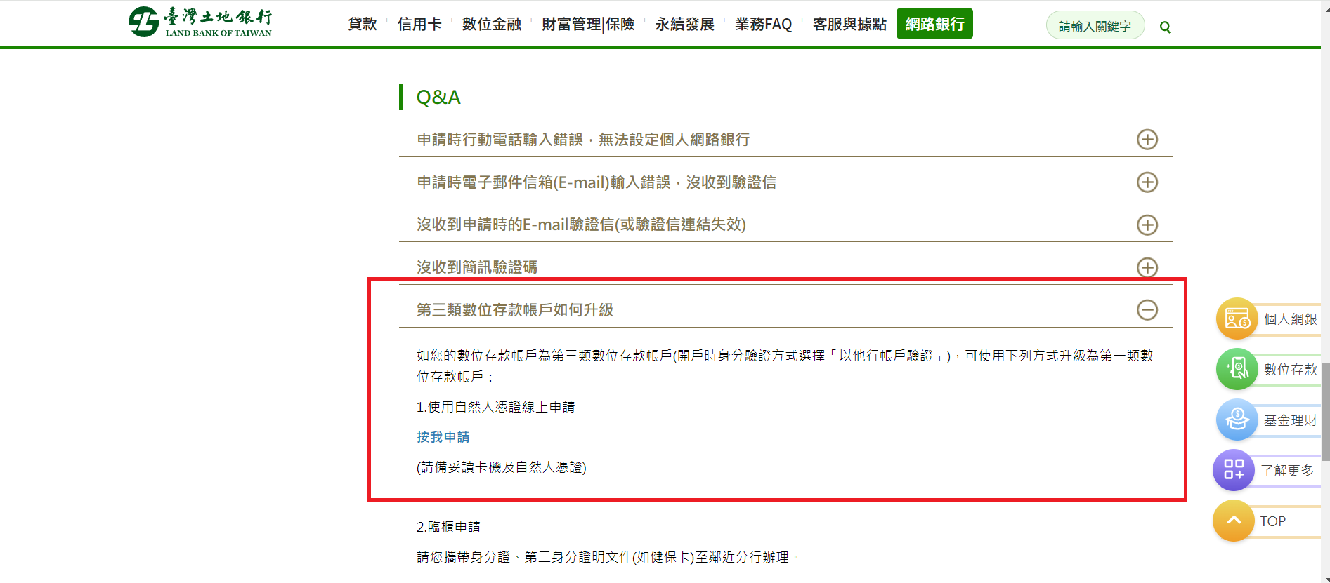推 VBboy: 數位帳戶申請頁面右上角有一個服務總覽,點進去就有 01/19 14:52
