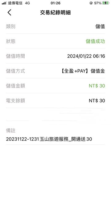 剛剛看全盈pay,活動一30元回饋已經入帳,