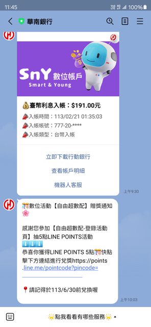 推 DLenu: 謝通知,只看到利息入帳通知,沒注意往上拉還有這個訊息 02/21 12:29