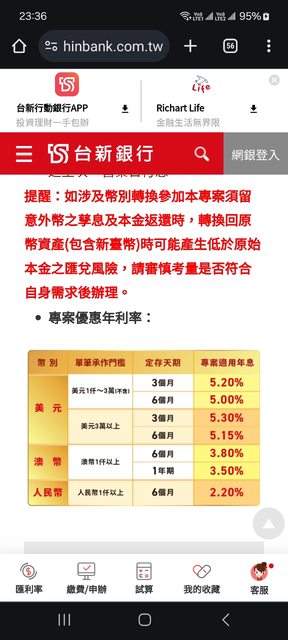 irrealsu: 其實richart有時推出的外幣定存利率還算不錯,缺點就是04/05 21:05