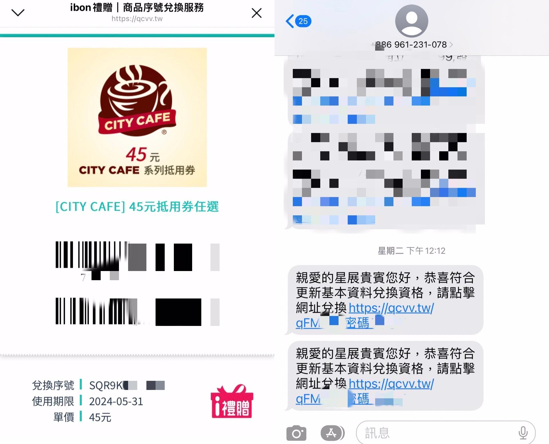 → ycchen0517: :12,連續收到二封一模一樣的兌換簡訊,期限很短, 04/27 13:32