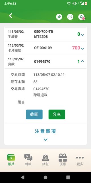 推 concerto28: 有時銀行會刷ㄧ元作為驗證機制,之後退還客戶,可以 05/07 16:34