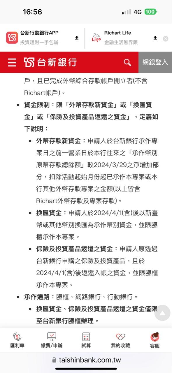 → alex1973: 限「外幣存款新資金」或「換匯資金」或「保險及投資產品 05/17 12:26