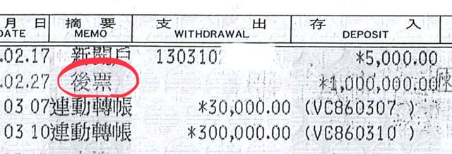 2/27這筆款項就出現在存摺上,並註記為「後票」
