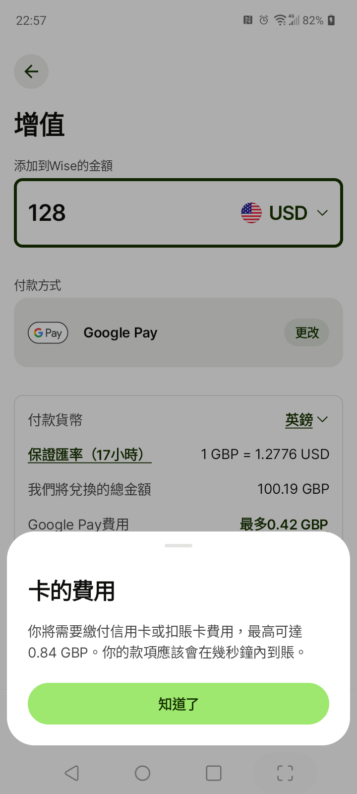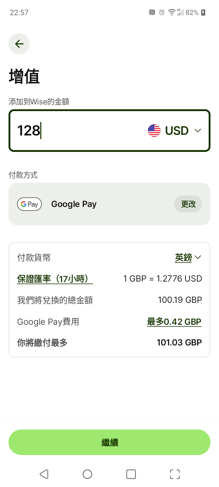 之前聽說 Wise 入金手續費使用 Google Pay 刷英鎊入美金的手續費很低