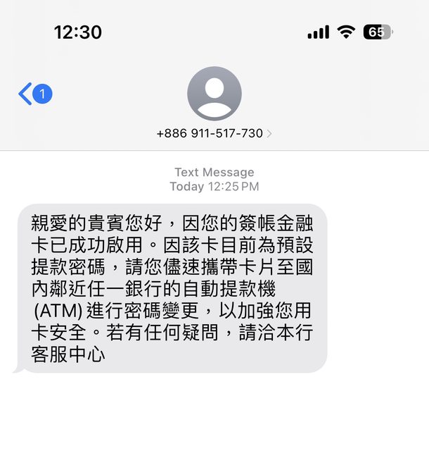 → cutekenny: 最近沒開新帳戶或換卡,這簡訊就當詐騙直接刪掉 05/29 12:47