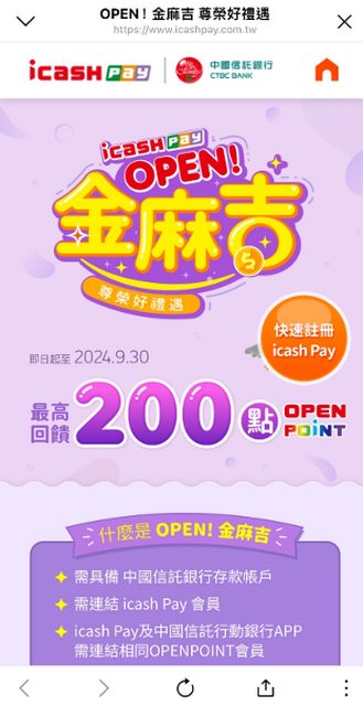 標題[情報] 中信用戶註冊icashpay新戶回饋200點