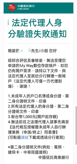 → TZUYIC: 就被拒,那就再沒有機會開數位帳戶,只能臨櫃開戶,目前我11/05 11:16